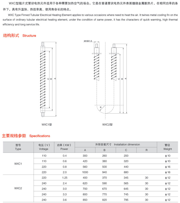 WXC型翅片式管狀電熱元件