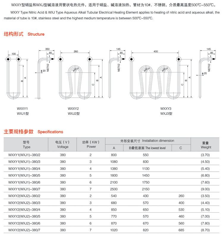 WXXY型硝酸和WXJ型堿溶液用管狀